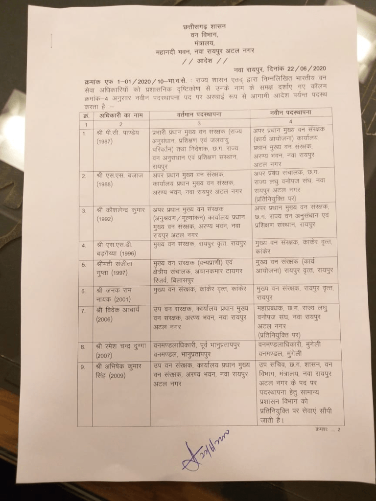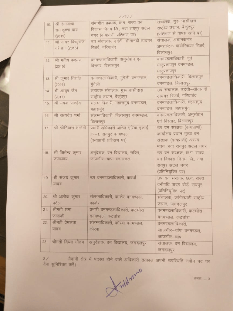 The Chhattisgarh government on Monday issued transfer posting orders of 23 IFS officers in the state. Transfer list :