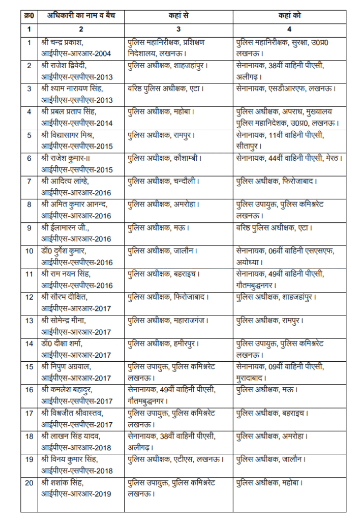 The Uttar Pradesh government on Monday (March 30, 2026) carried out a major reshuffle in the police administration, assigning new responsibilities to 27 IPS officers. The changes include the transfer of one Senior Superintendent of Police (SSP) and 16 Superintendents of Police (SPs), as part of a broader administrative exercise across the state.